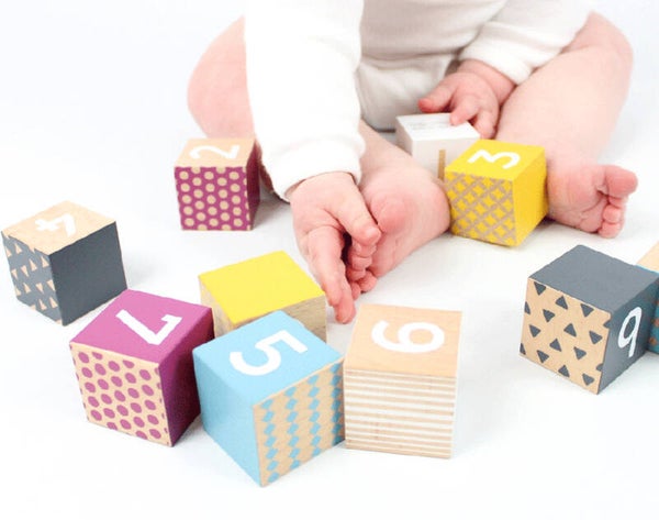 Deze lichte houten blokken hebben mooie heldere kleuren en verschillende patronen. Jonge kinderen ontwikkelen hun fijne motoriek door de blokken te stapelen. Spelen met de cijferblokken is ook een leuke manier om kinderen te leren tellen als ze wat ouder zijn.