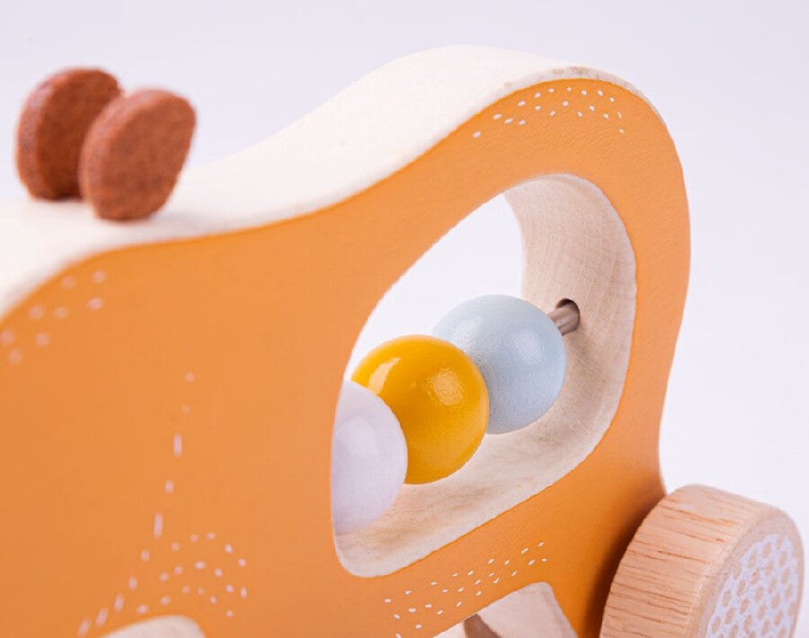 Deze leuke houten beer op wieltjes rolt de kamer door! De beer is makkelijk vast te pakken en over de grond te rollen. Het spelen brengt kinderen in beweging en stimuleert de mobiliteit en coördinatie.